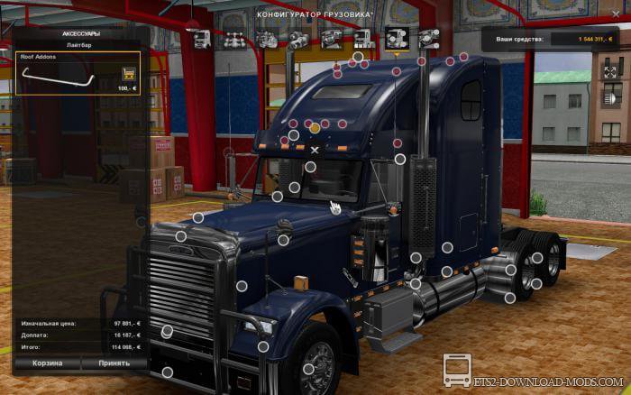 Весьма обширные изменения постигли грузовик Freightliner Classic XL для последней версии игры. Модификация протестирована в работе на ЕТС 2 1.24 и функционирует совершенно без проблем. Машина обзавелась дополнительным тюнингом и улучшенными звуками работы двигателя. Также поддерживается использование DLC Cabin Accessories, что прибавит возможностей модификации салона грузовика.