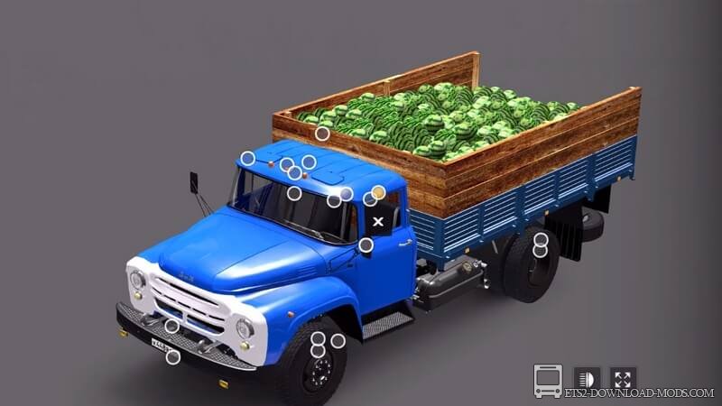 Также автором продумана поддержка перевозки тандемных грузов. В этом случае вы устанавливаете какой-нибудь бортовой прицеп с числа доступных и подбираете специальный тандемный груз, мод на который также вы можете скачать в этой теме. Грузовик ЗиЛ 130 / 131 для Euro Truck Simulator 2 смотрится очень неплохо и вполне реалистично. Некоторые нарекания может вызвать непривычный вид в кабине. Это можно исправить, ведь архив с моделью легко можно откорректировать. Для того, чтобы сделать картинку в салоне более привычной нужно в файле модификации грузовика ЗиЛ-130 по пути def\camera\units открыть файл interior_130.sii и подправить в нем параметр camera_fov, установив значение в районе 70-75. Для актуальной версии ETS 2 мод создавался и поэтому будет работать без проблем.